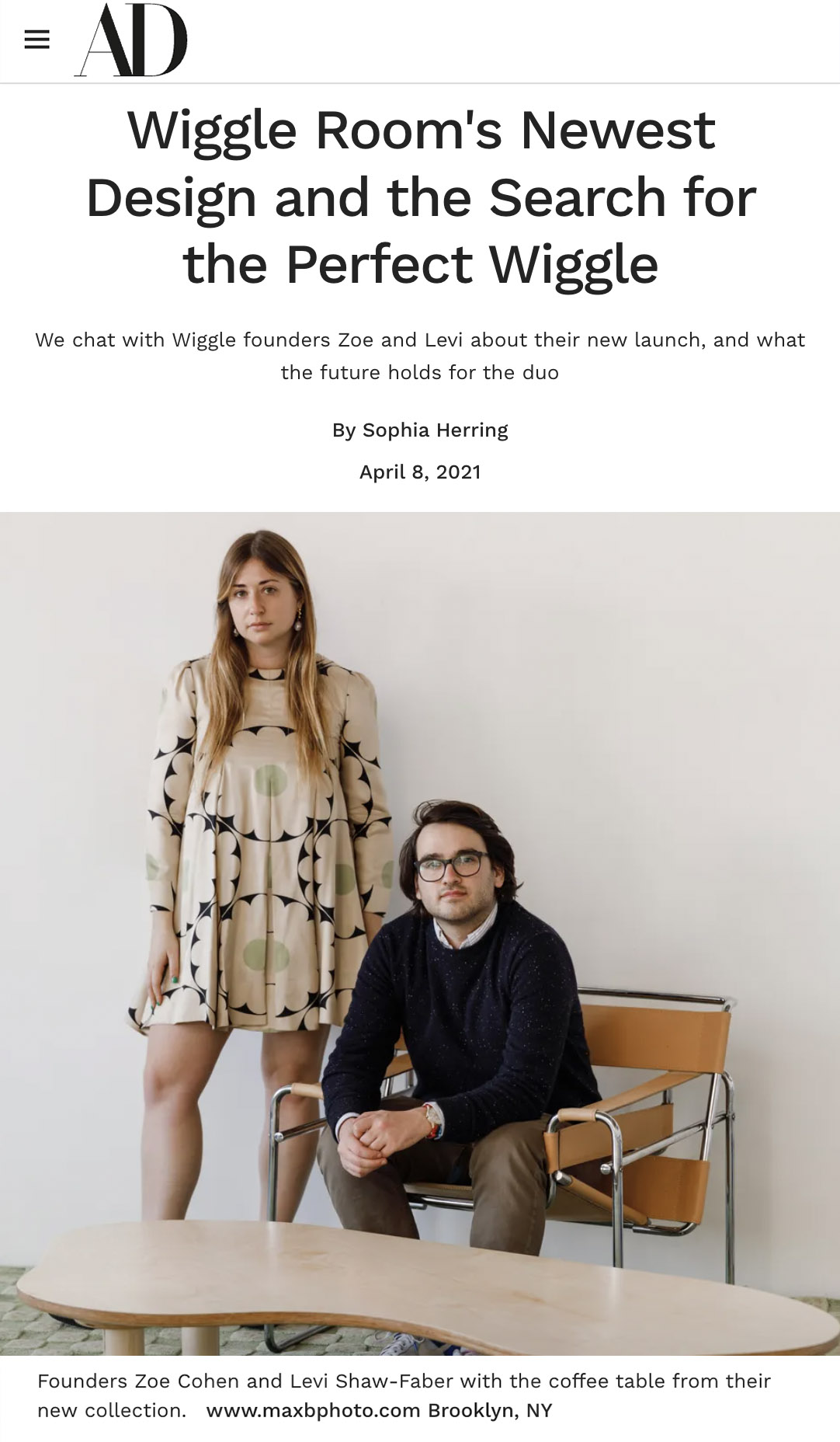 Co-Founder and Chief Marketing Officer of Wiggle Room, a joyful furniture company based in New York. The table collection is available in 5 sizes, 10 colors, and features plastic-free packaging. Wiggle Room has been featured in over 50 publications including The New York Times, Architectural Digest, New York Magazine, and Vogue.